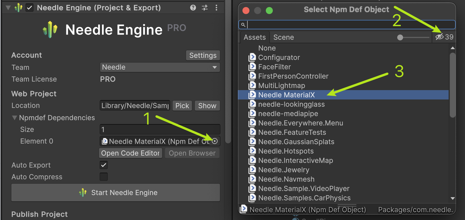 To enable MaterialX support in your Needle Engine project, you need to add the @needle-tools/materialx package to your project.